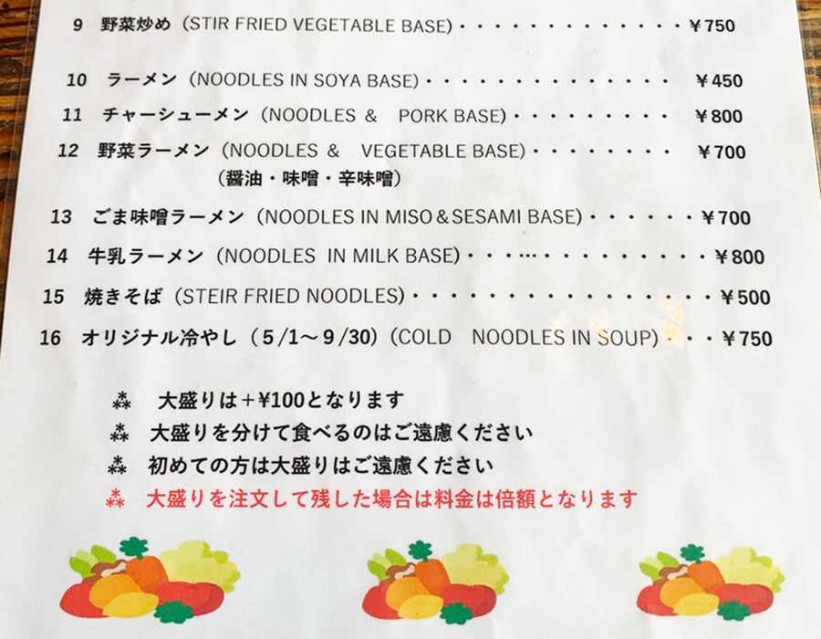 普通盛りでも、あの注意書きを見ると残してはいけない気がして一気にかきこみなんとか完食。