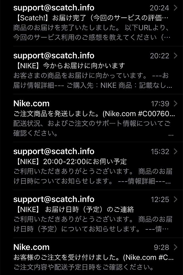 オンラインで購入した3時間後にはお届け予定のメールが。
