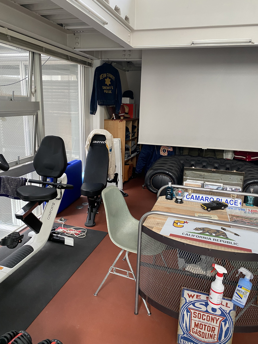 こちらの編集部、いつ来てもお宝いっぱい。そしてなぜかラックに掛かったダンベル・・・