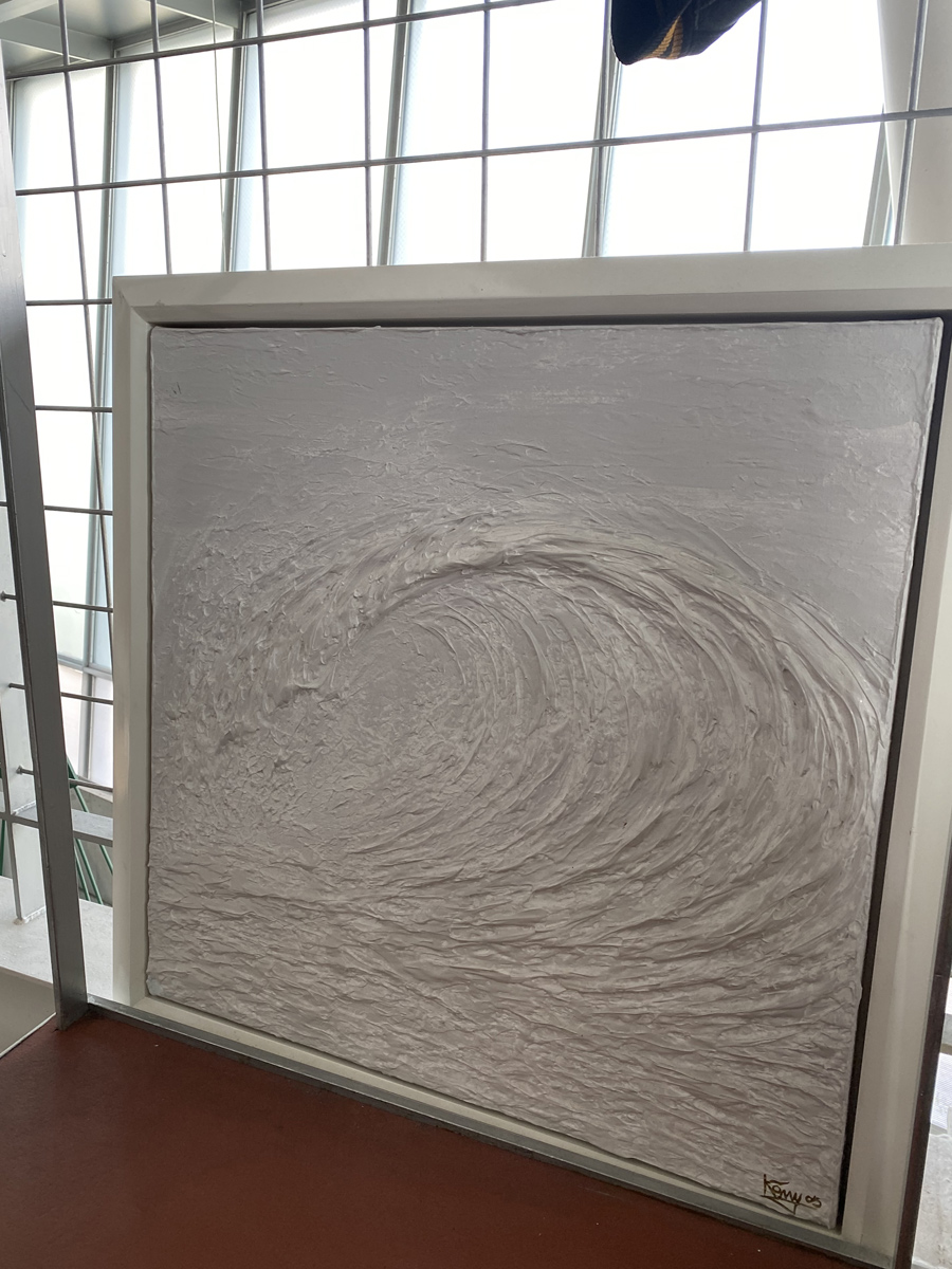 編集部の一角に以前Komyが小野里さんにプレゼントした作品が飾られています。