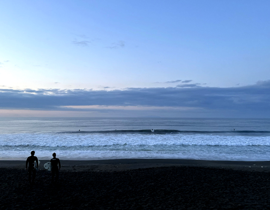 セットは繋がり気味でしたが形の綺麗な波が割れていてレギュラー、グーフィー両方走れる波が入ってきてました。