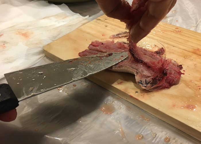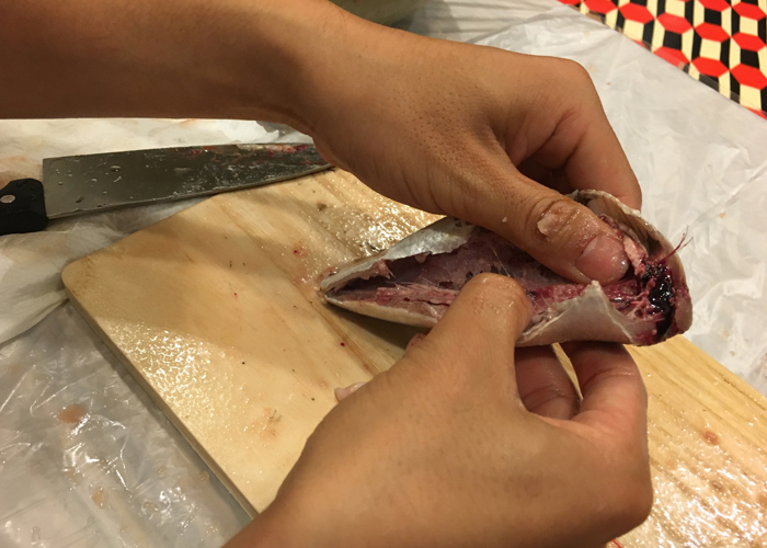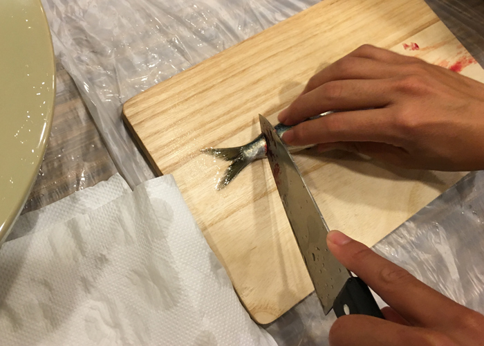 中骨も尾っぽから包丁を気持ち上に向けておくと、身を切らずに綺麗に取り除けます。