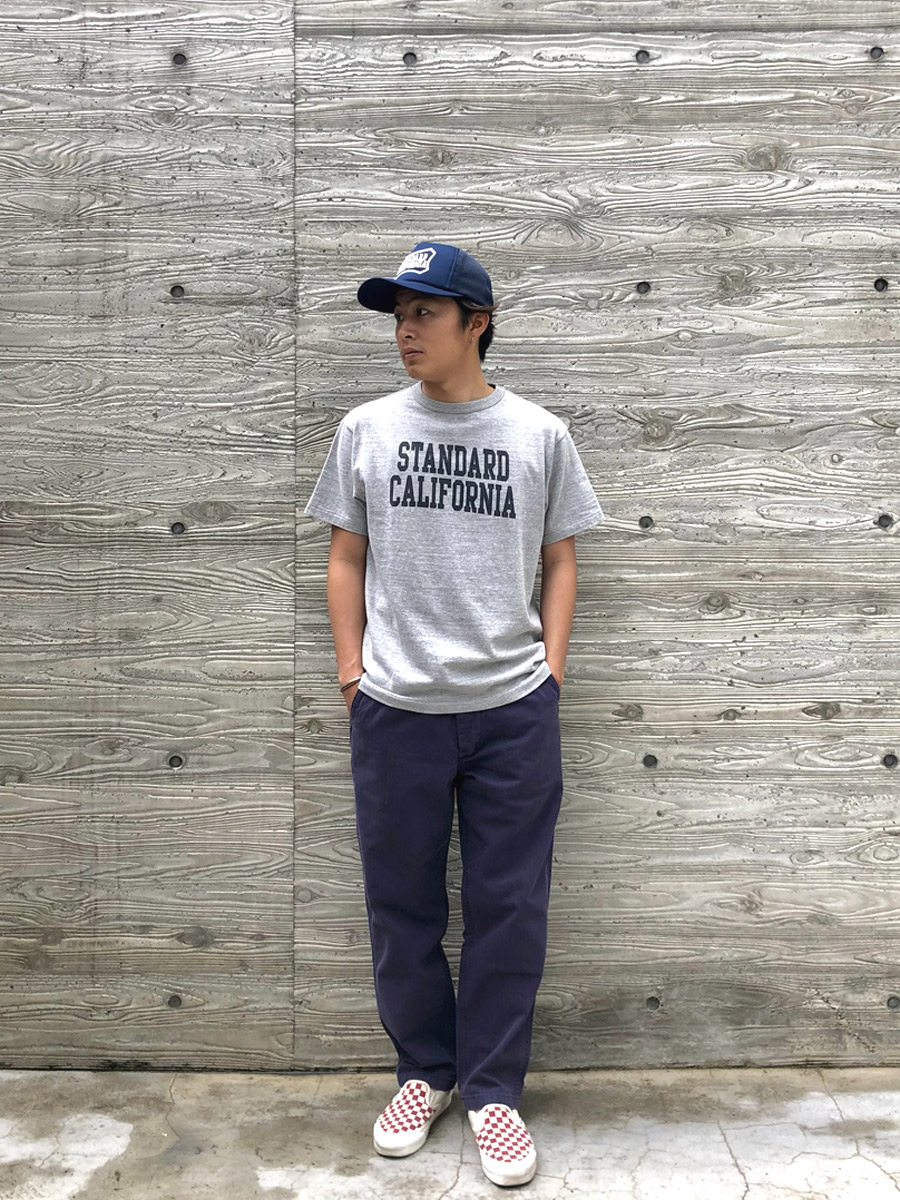 肌触りが良く滑らで、吸湿、放湿性が高いレーヨンがコットンに混ざることで機能性が上がりより快適な着心地の88/12 Logo Tに、色の抜け感が絶妙はヘリンボーンパンツを合わせました。