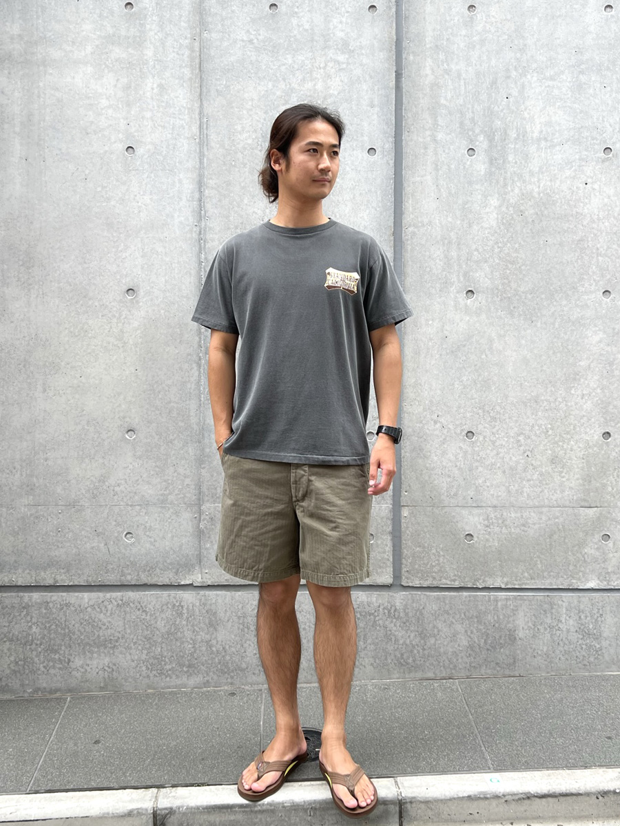 ボトムスは1940年代のUSMC(アメリカ海兵隊)のヴィンテージをイメージしたヘリンボーンショーツを合わせました。