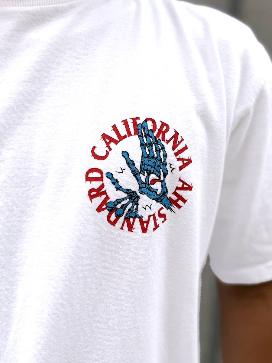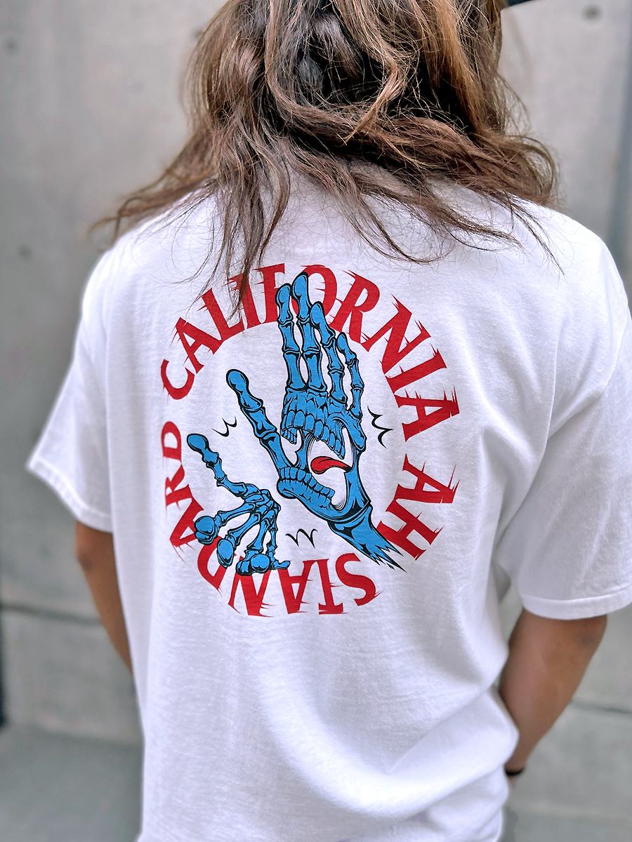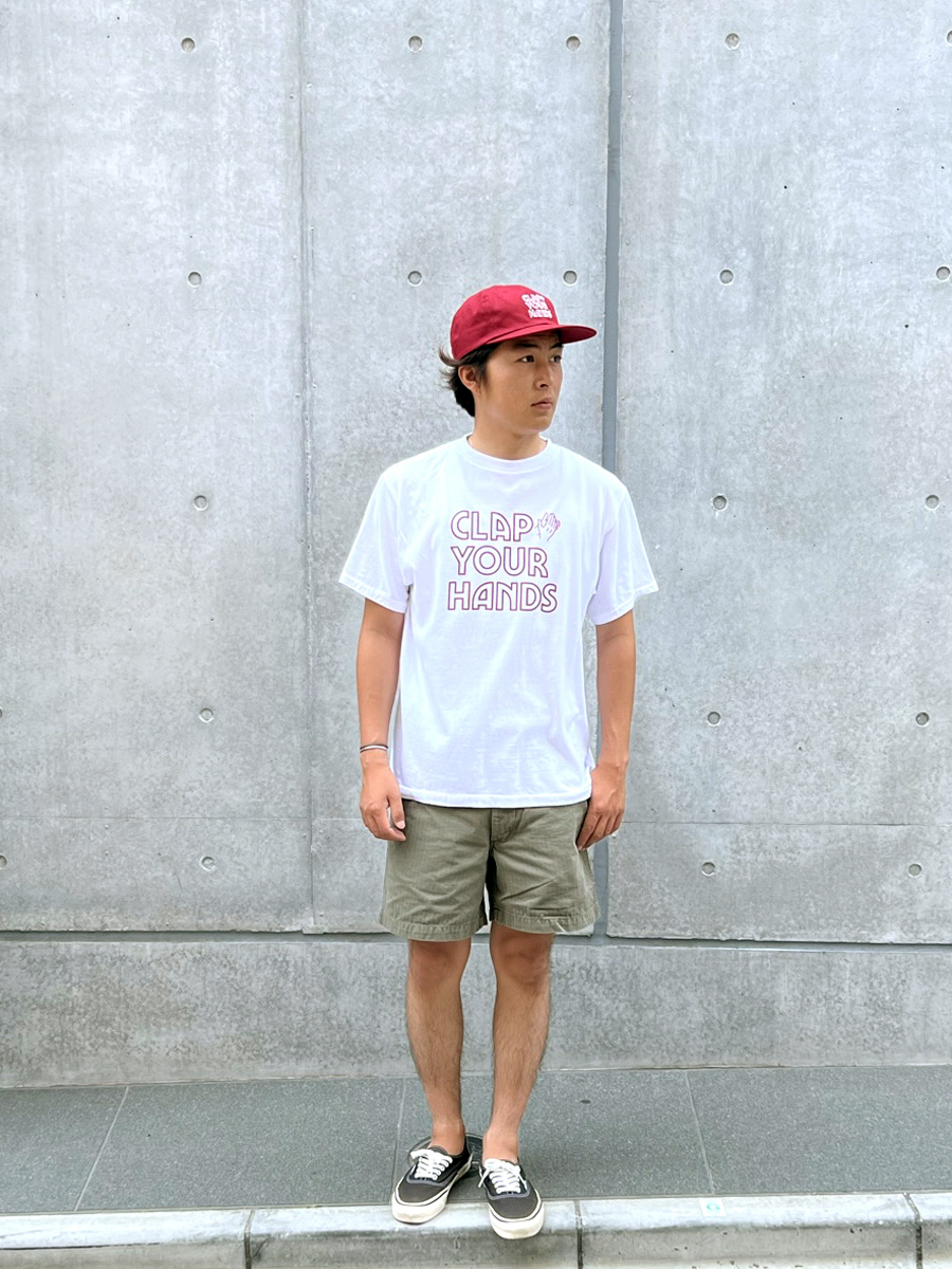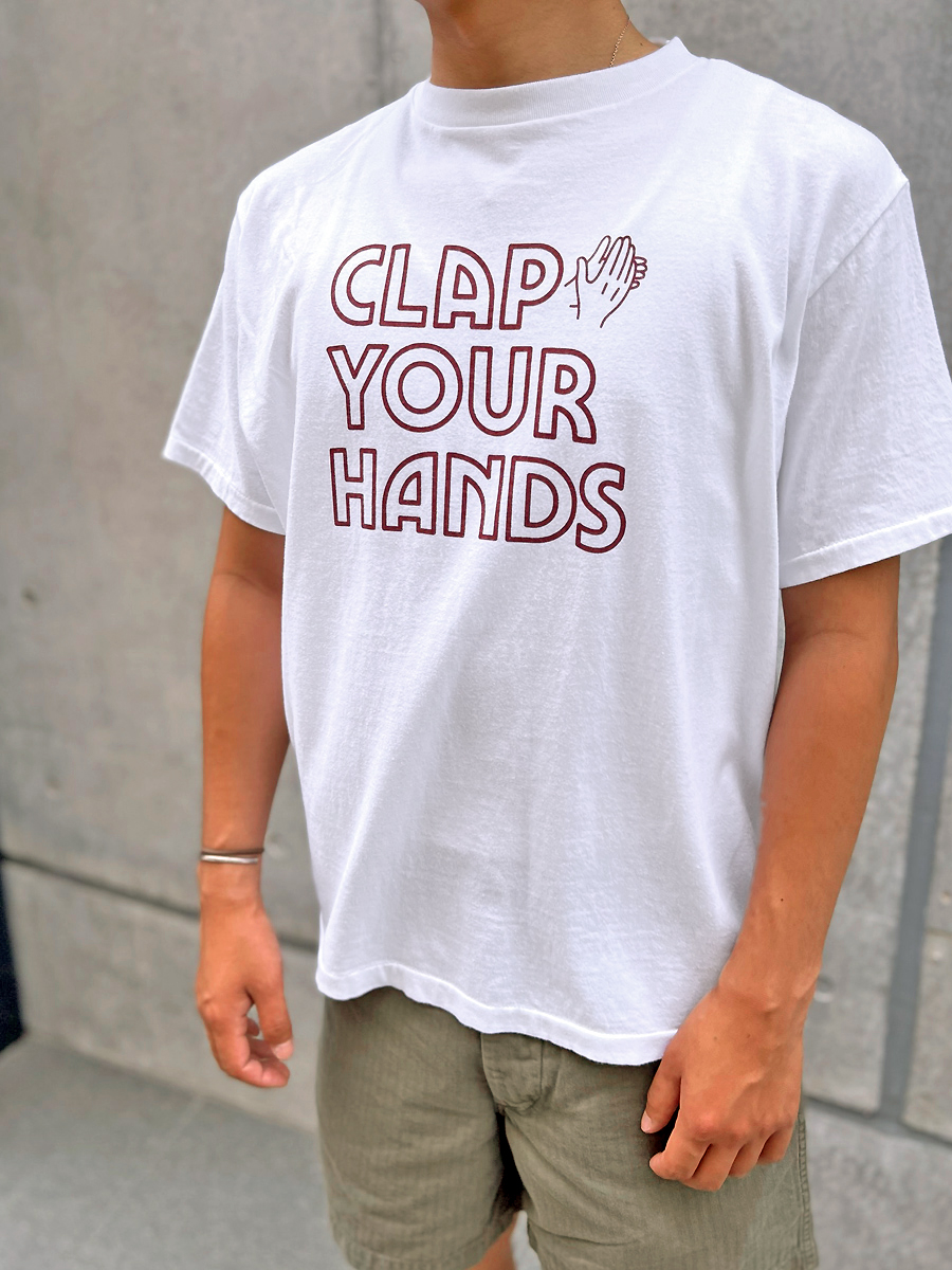 スケートブランドをオマージュしながら、今シーズンのテーマに合わせ手を叩いているようなイメージを落とし込んだkomyさんらしいグラフィック。