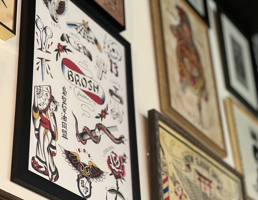 店内にはタトゥーフラッシュやアーティストのポスターなどが飾られていてオーナーの拘りが詰まっています。