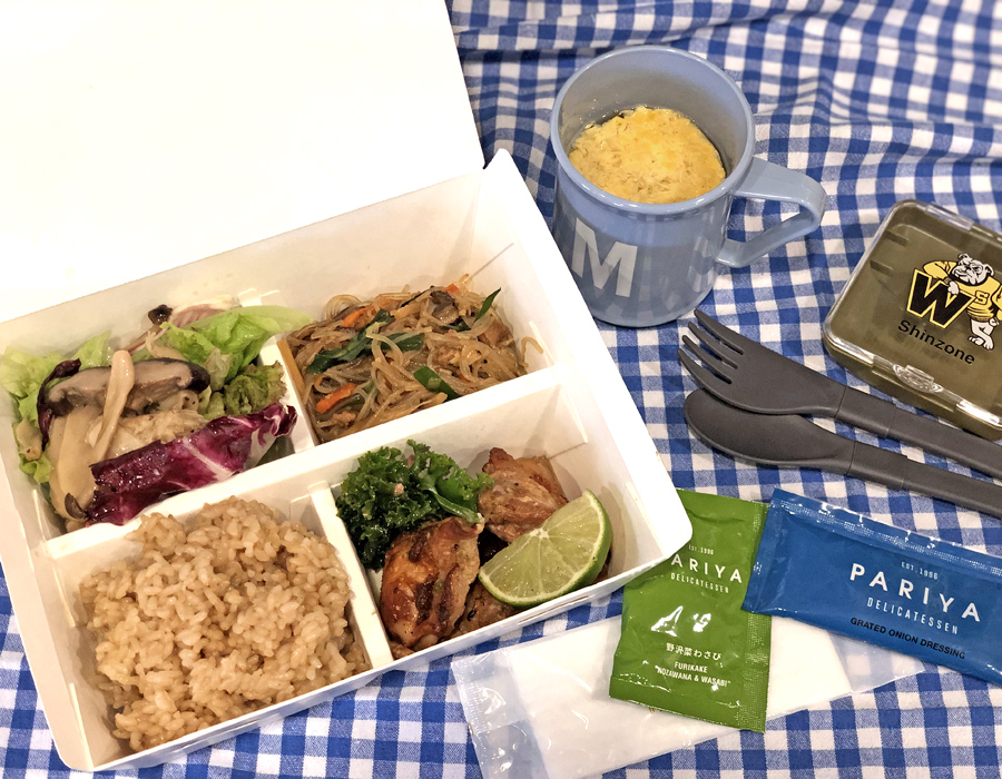 ランチボックスには、メイン、サラダ、サイドメニューとごはんが入ります。