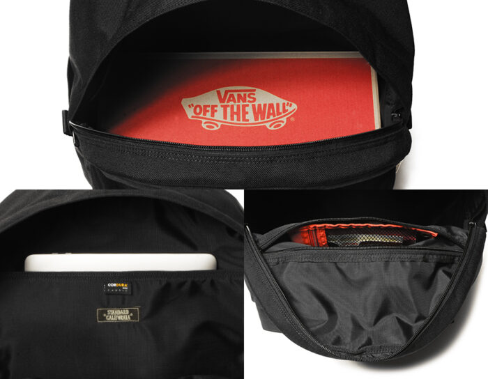 普段使いでも違和感のない自然な見た目ながらVANSのBOXがスッポリ入る収納力。