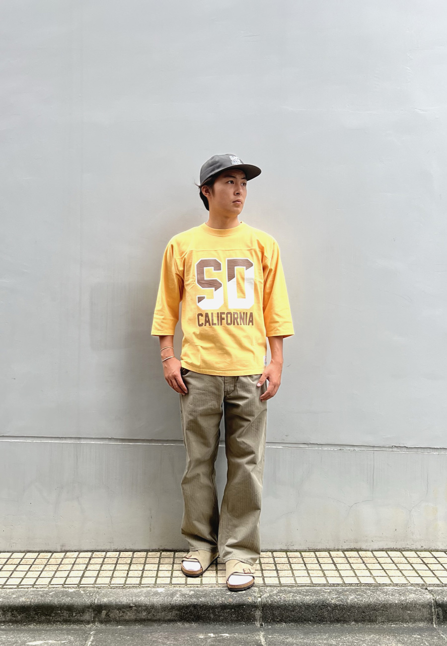 定番のヘビーウエイト生地を使用した新型のフットボールロゴT。