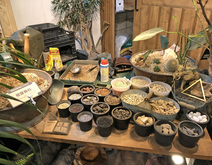 植物と鉢をセットで購入すると、用土や底石、化粧石が選べて無料で植え替えまでしてくれるんです。