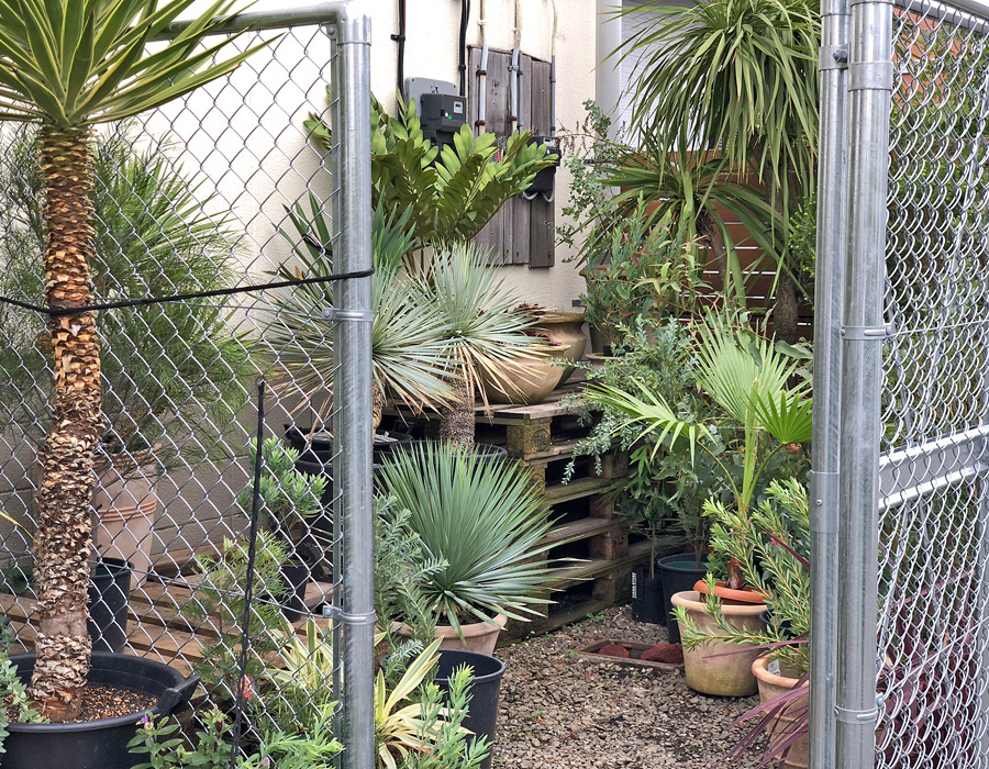観葉植物専門店ですが、入り口付近や右横のフェンス内には外用の苗木も少しですが扱っています。