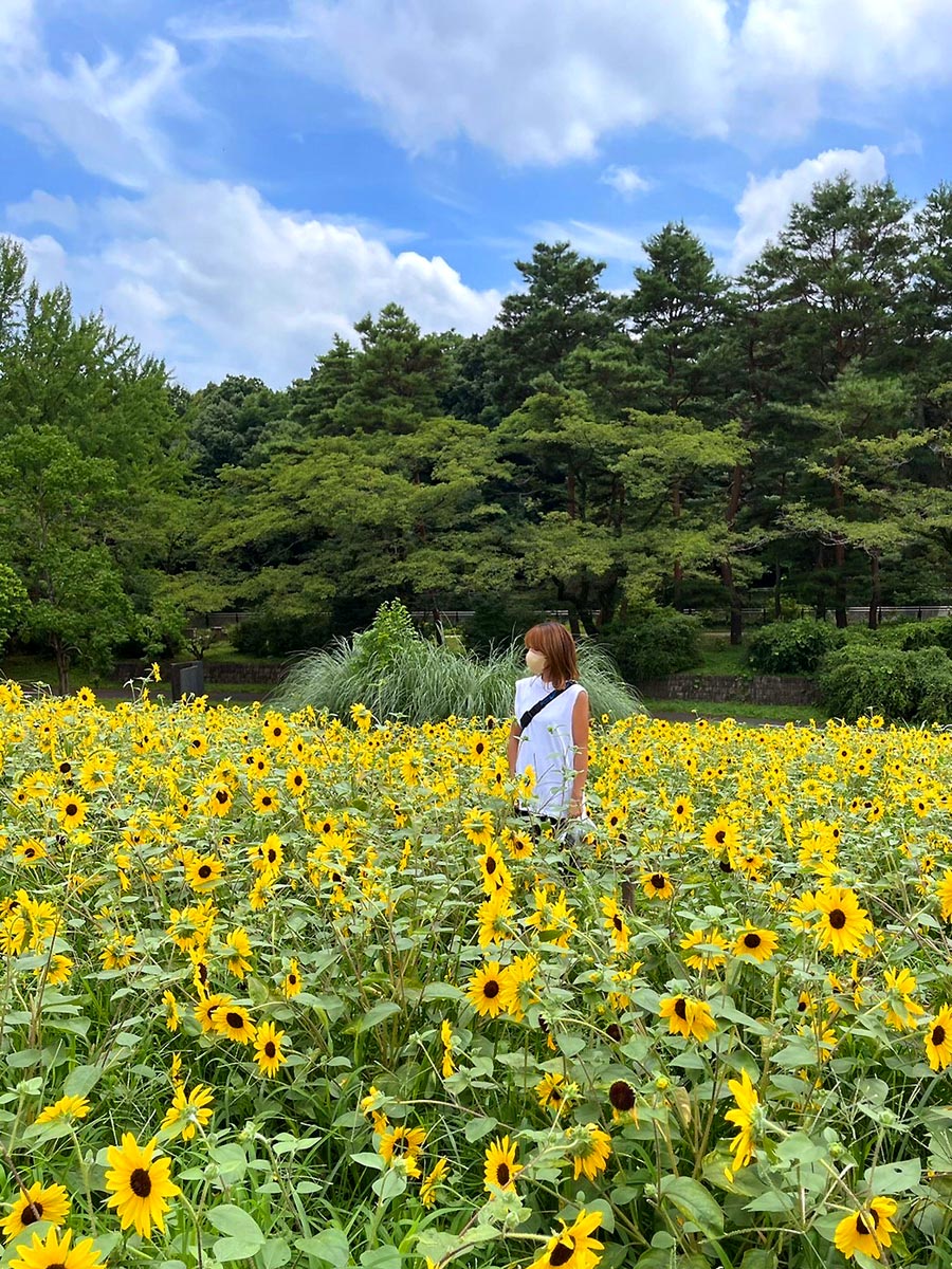 広い園内の何カ所かにひまわり畑があって、ウォーキングしながら夏を感じることが出来ます。