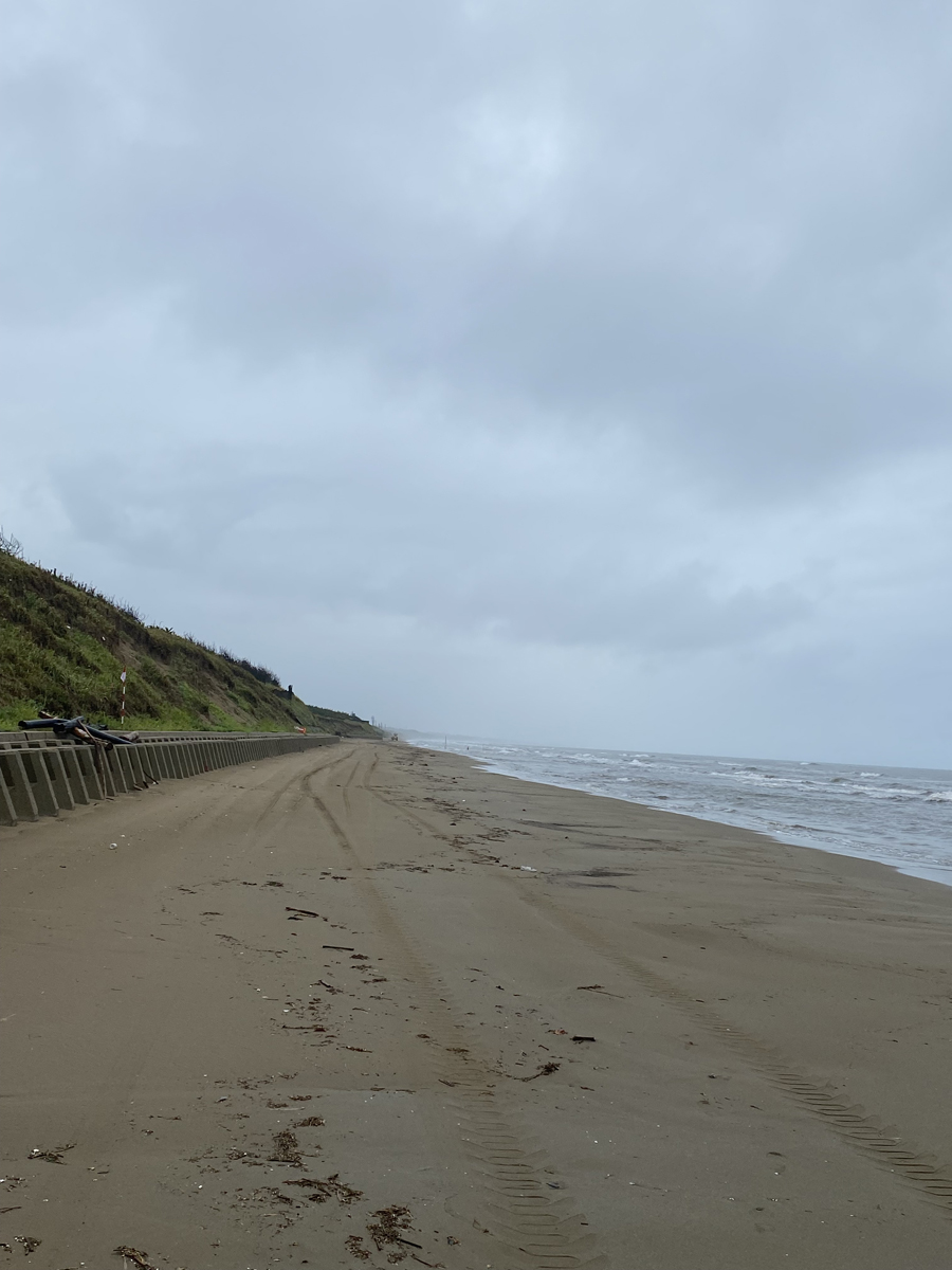 前夜の嵐の影響か、走れる砂浜は無く、海の色も川からの濁流の流れ込みにより茶色に・・・