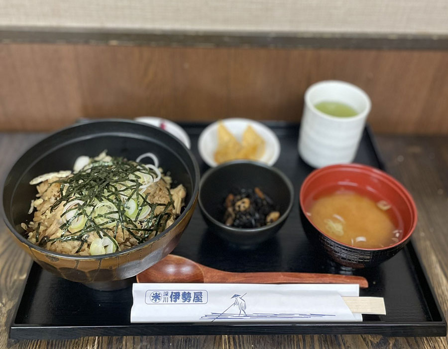 お店の左側にはお食事処があり、地元名物のあさり、ハマグリなどの貝類が入った「深川めし」もあります。
