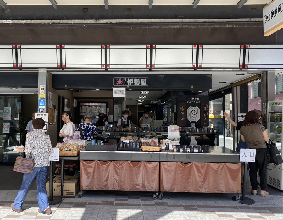 明治40年創業の伊勢屋さんは門前仲町に本店を構え、平野、日暮里駅構内などに複数店あります。