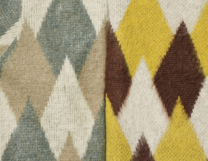 ヴィンテージ市場でも近年とても人気が高く価格が高騰しているアイテムで、今シーズンはその中でも特に人気のダイヤ柄をモチーフに初めて柄物で作製。