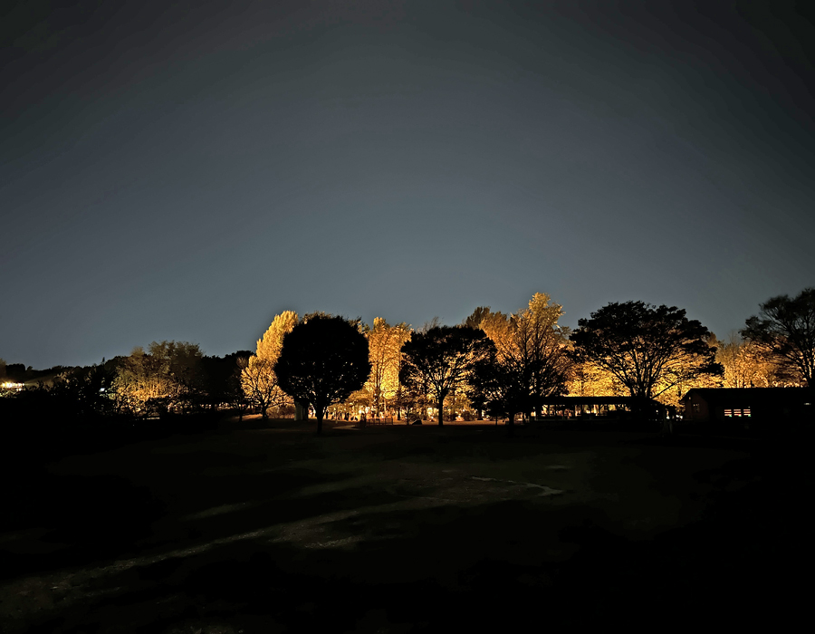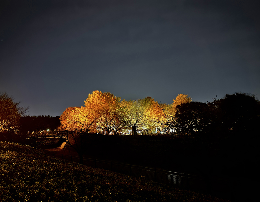 ライトアップは公園内の奥にある「かたらいのイチョウ並木」と「日本庭園」の2カ所。