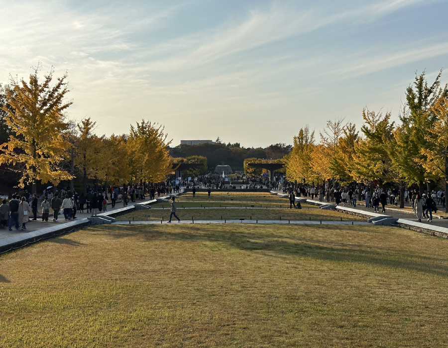 「かたらいのイチョウ並木」:公園入口での入園料のみで見られます。