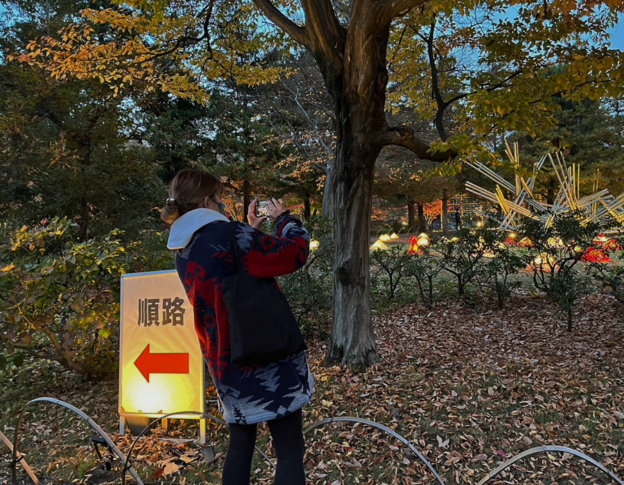 公園内がとにかく広いので、ライトアップ場所に移動しているうちにすっかり日が暮れてきました。