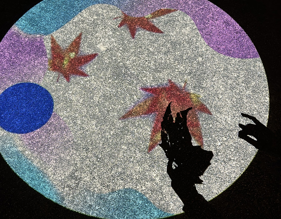 見ていると楓の葉を持った小学生の男の子が近づいてきて、おもむろに影絵を。