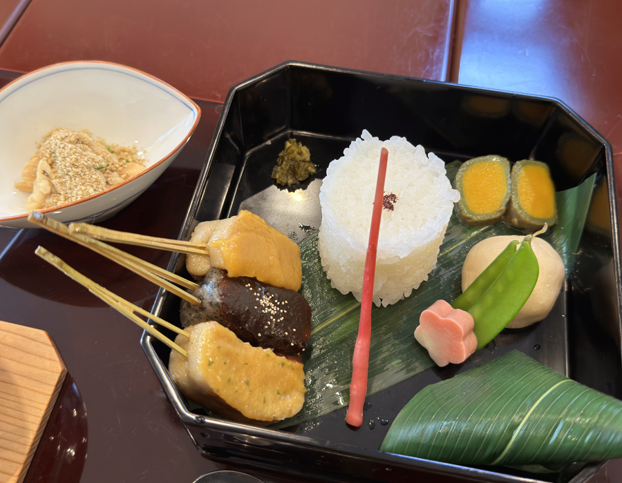 小さいころからこの生麩が大好物、京都到着最初のランチはこちらの「半兵衛麩」さんで京麸と京ゆばの点心「むし養い」を頂きました。