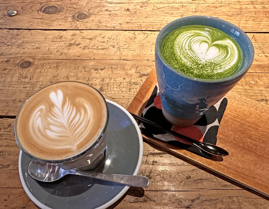 京都の焙煎所「WEEKENDERS COFFEE」のオリジナルブレンド豆を使ったコーヒーや、伏見稲荷のお茶屋さん「大谷茶園」の抹茶を使ったドリンクなどが頂けます。