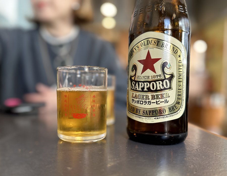 料理が来るまでは、スタッフおすすめ赤星ビールで喉を潤します。