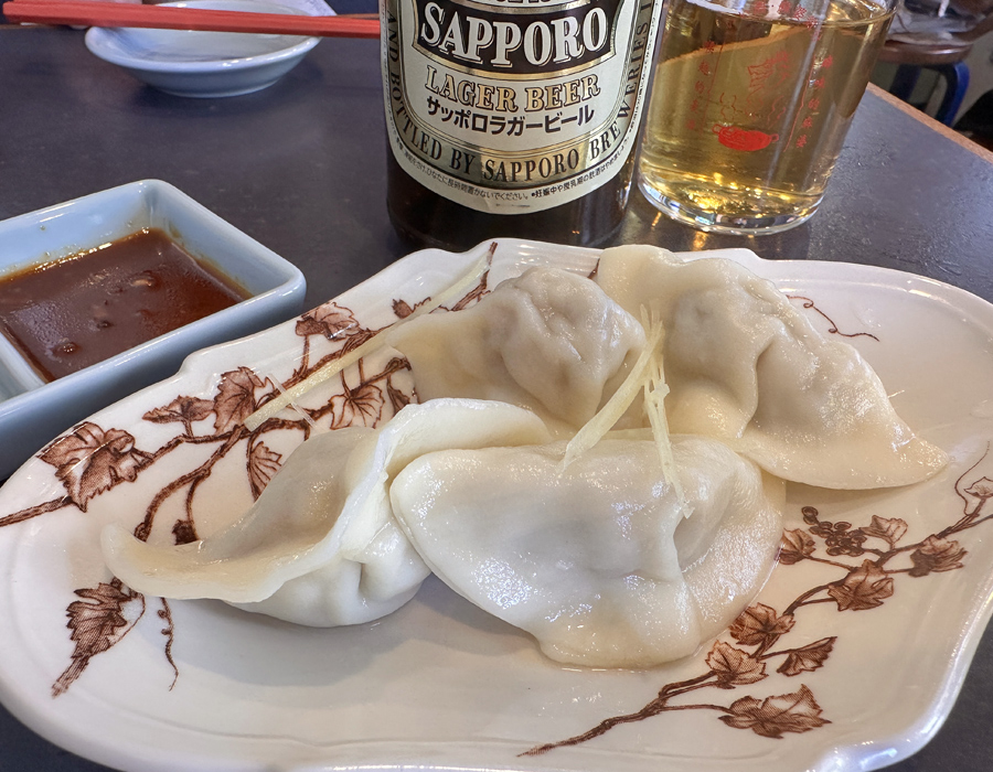 かかんさんの水餃子は大葉の風味が香る食欲をそそる一皿。