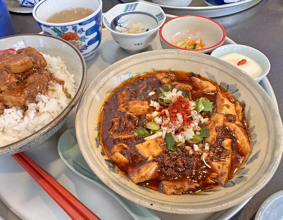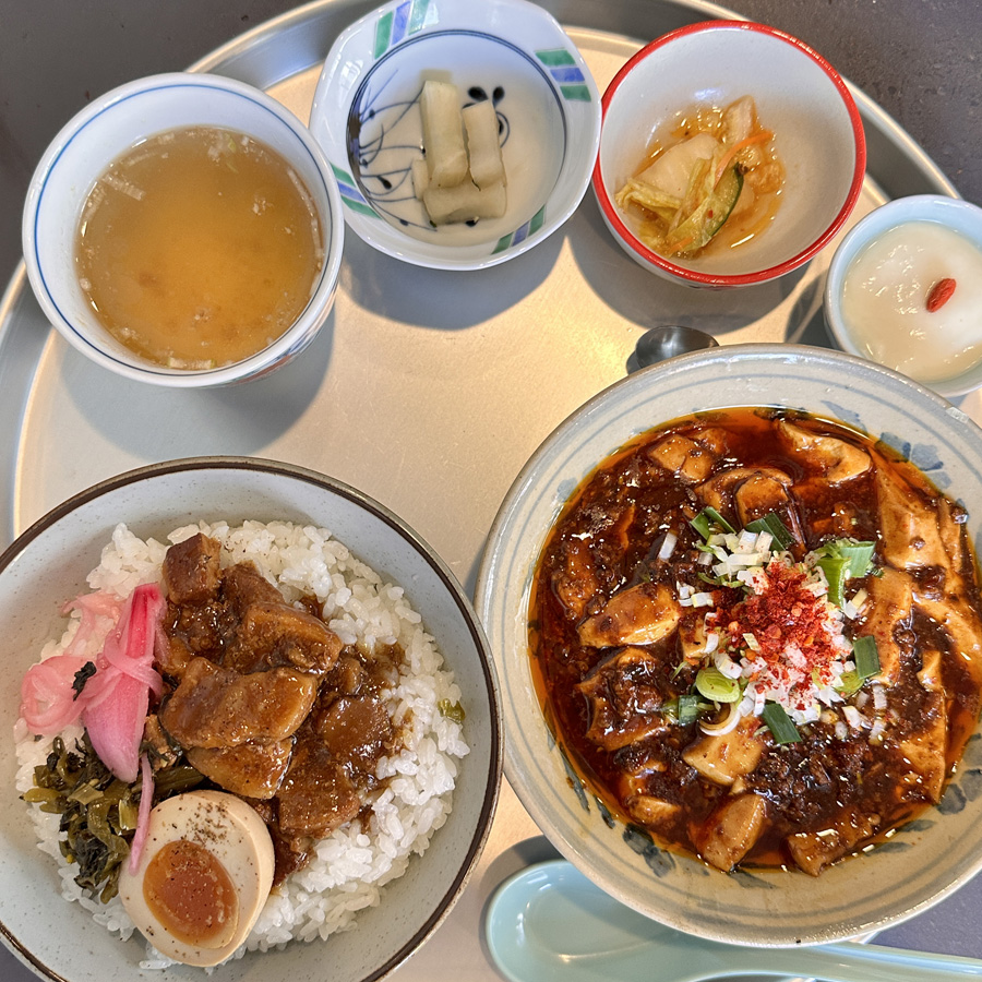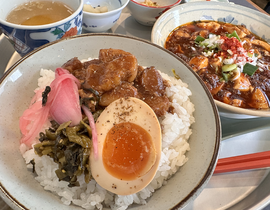 通常の麻婆豆腐定食は白いご飯ですが、魯肉飯へ変更も可能。