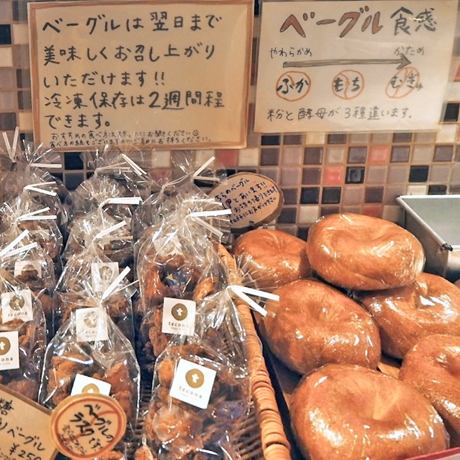 お次はこちら、代々木八幡駅からほど近い「tecona bagel works」さん。