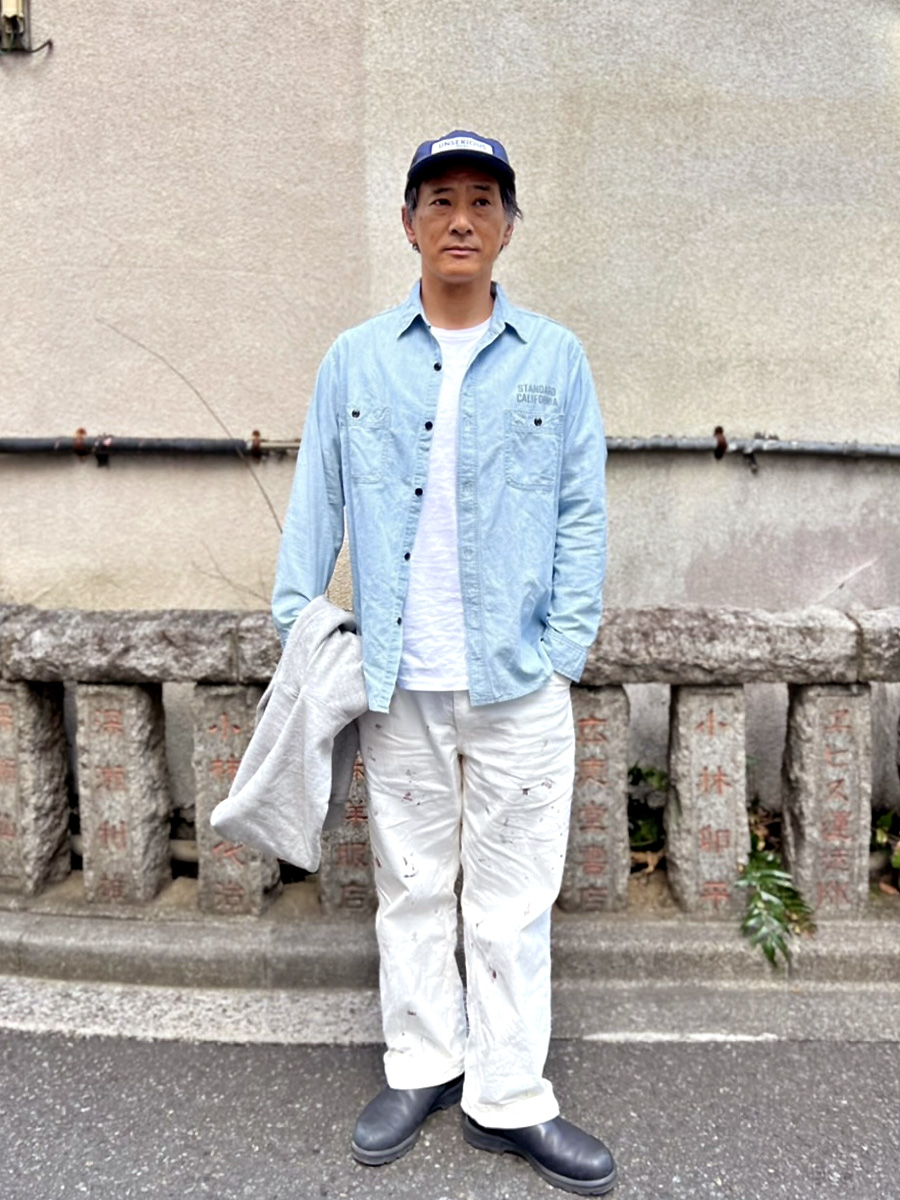 合わせたボトムスはペインターパンツ。