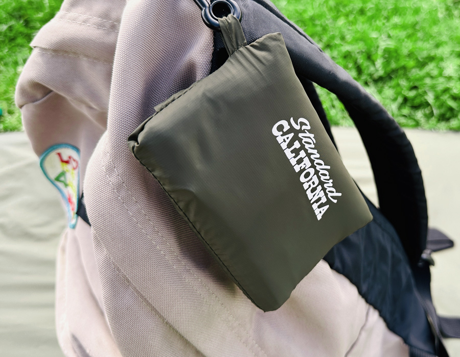 ボディは雨傘にも使用されている撥水加工が施された薄くて軽いナイロン素材。