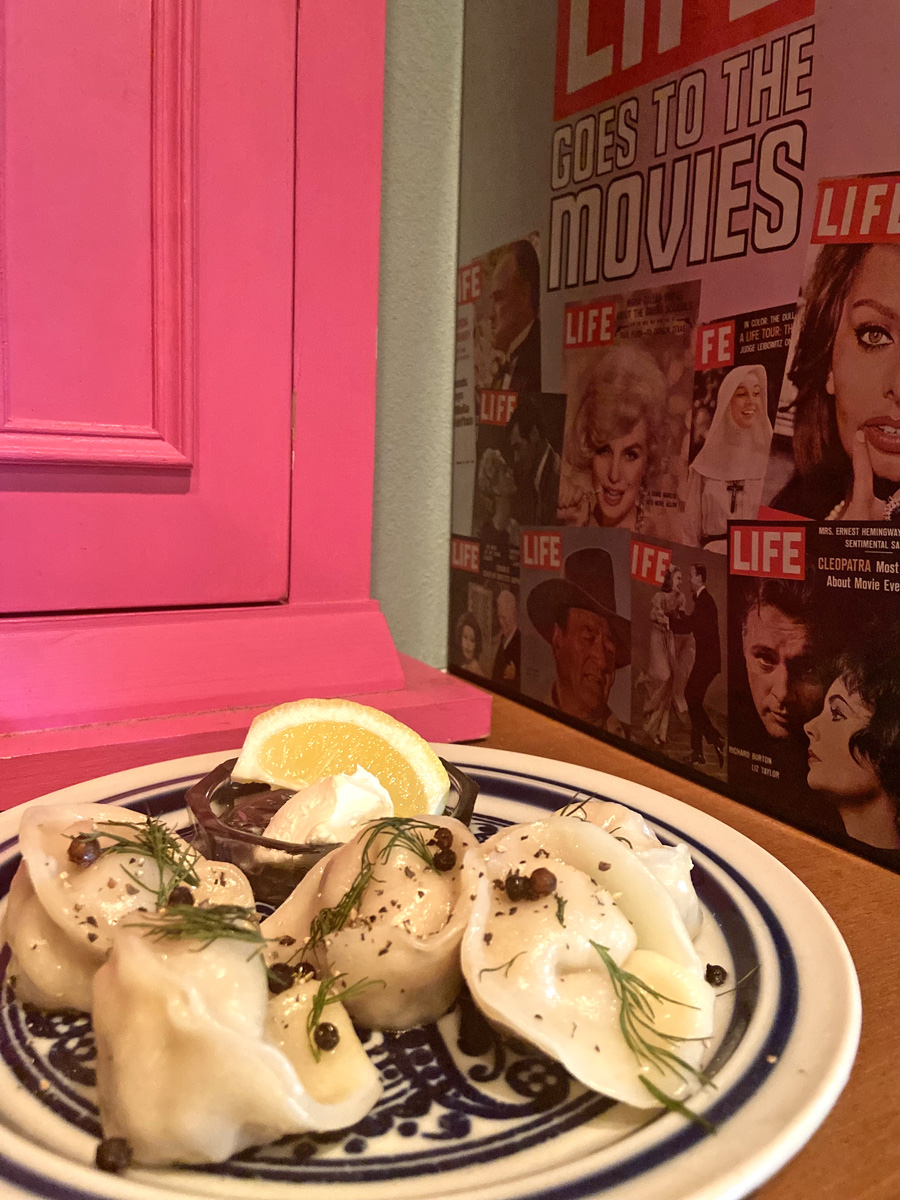 サワークリームやディルというセリ科のハーブと頂く水餃子。