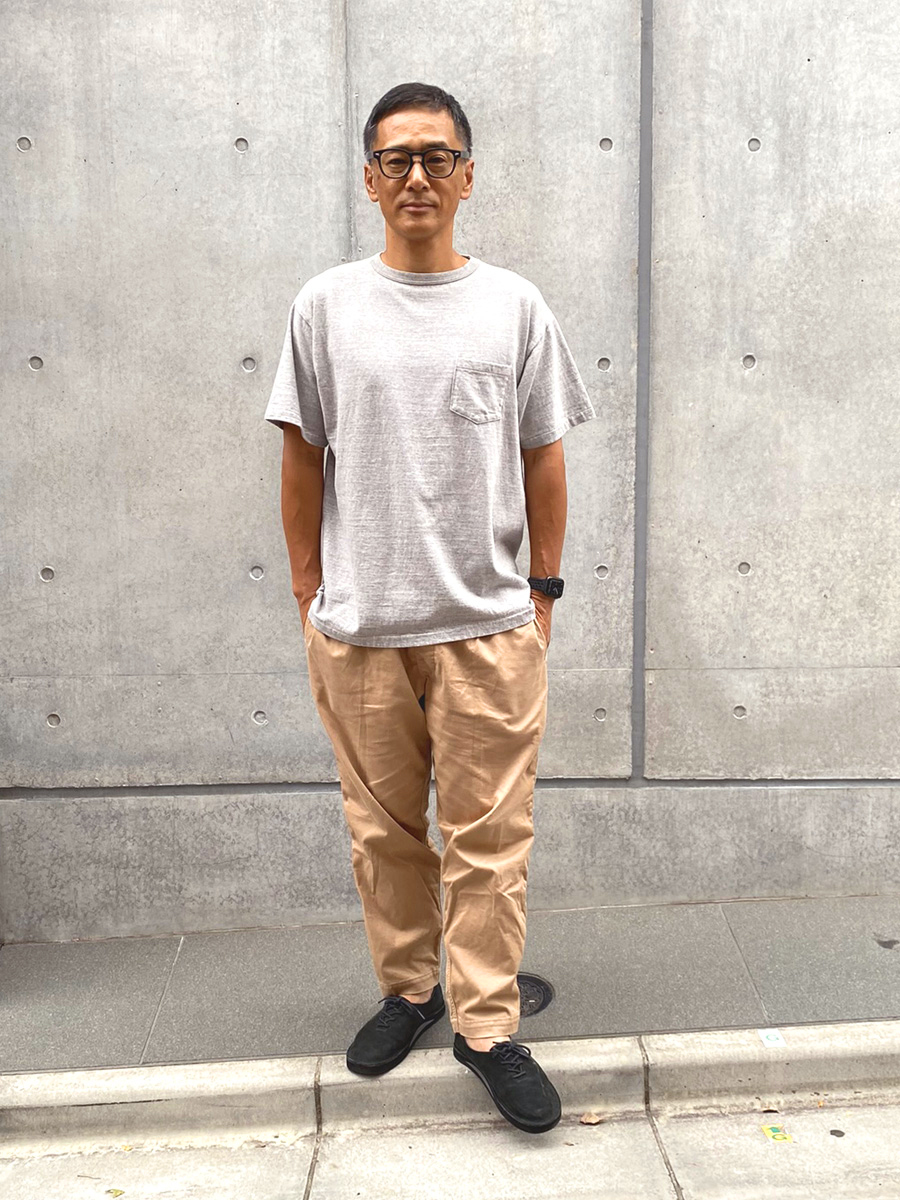 今日はナルトのイージーパンツに合わせましたがこういったラフなパンツやショーツには少し大きめなサイズを合わせるのもアリかと思います。