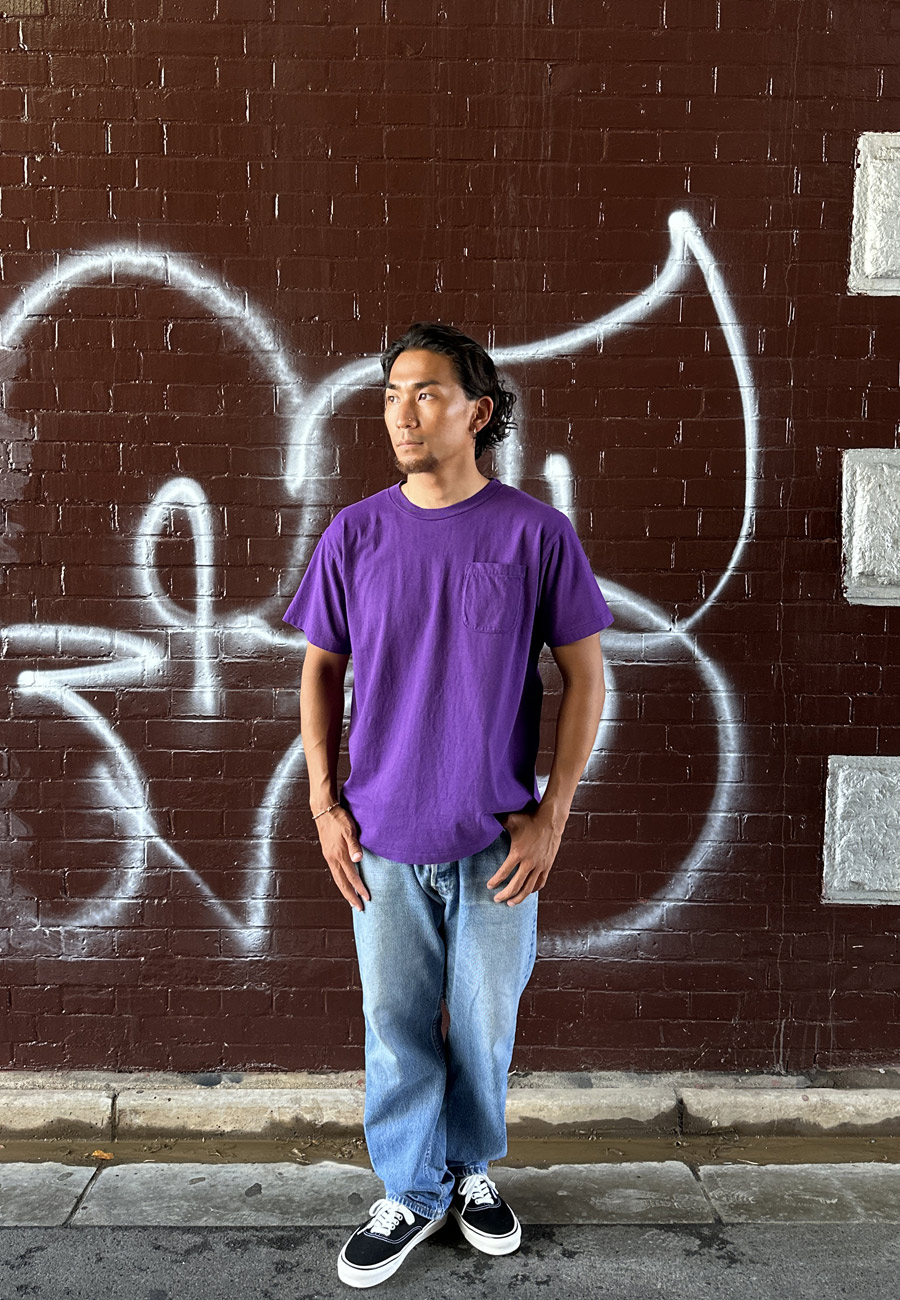 こちらは80~90年代のアメリカ製のTシャツをもとに作られていて、ほどよい張り感で油分が少ない為、硬めの質感にカラッとした生地感が特徴です。