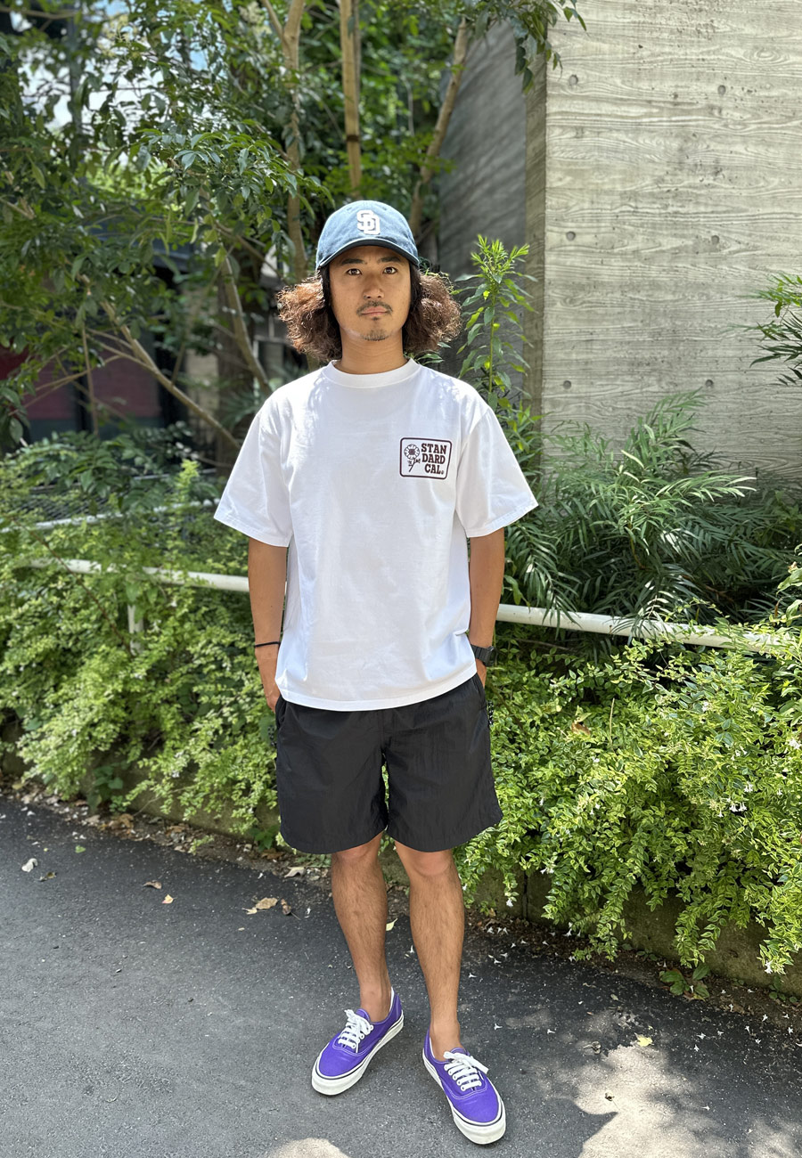ボトムスは夏らしくショーツ、足元はVANSのオーセンティックでまとめました。