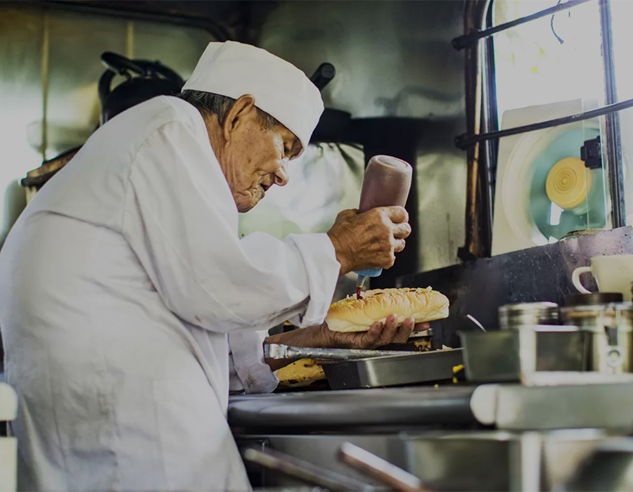 福岡・西公園で約50年以上前に生み出されたホットドッグスタイルのハンバーガー。
