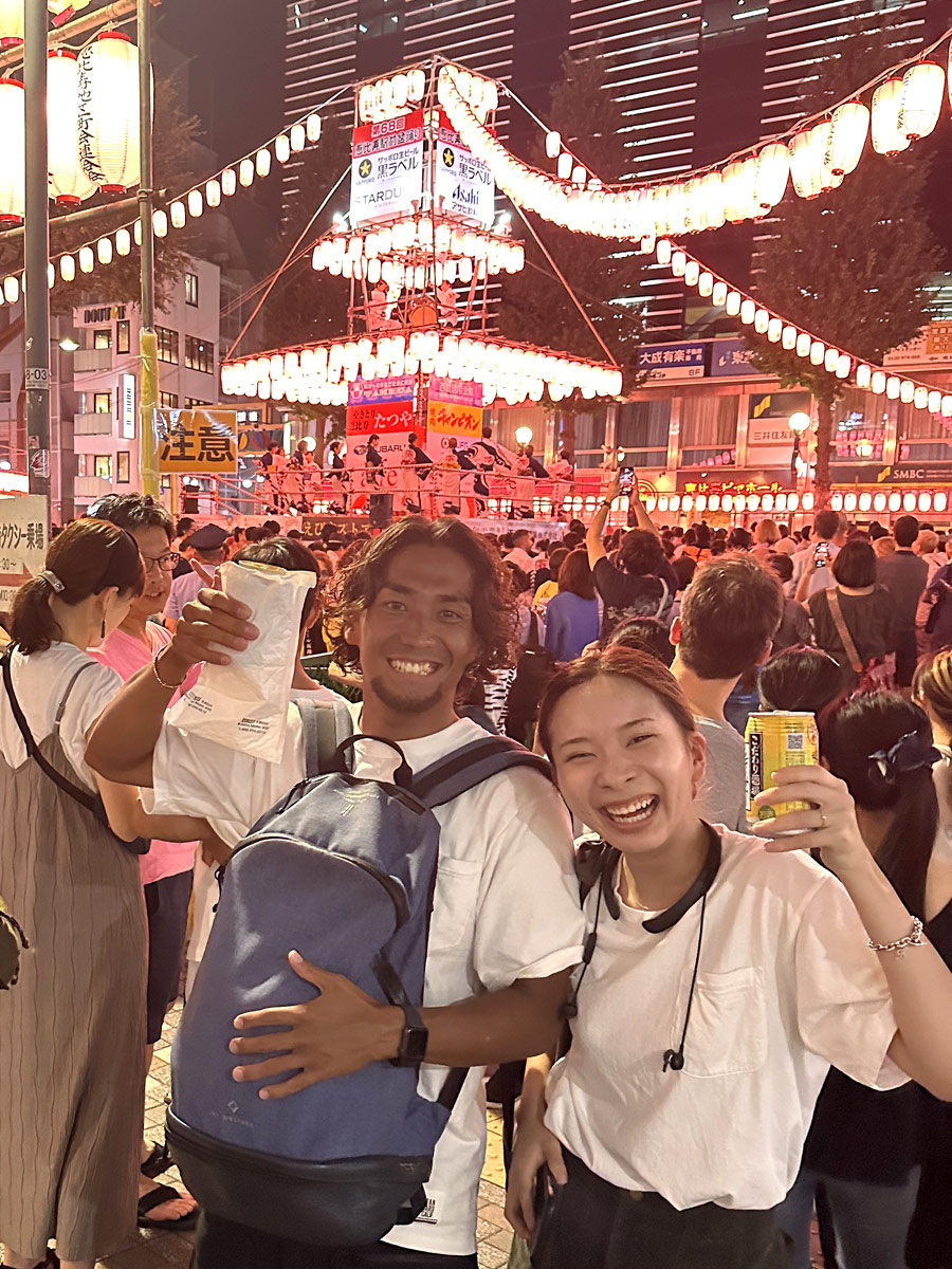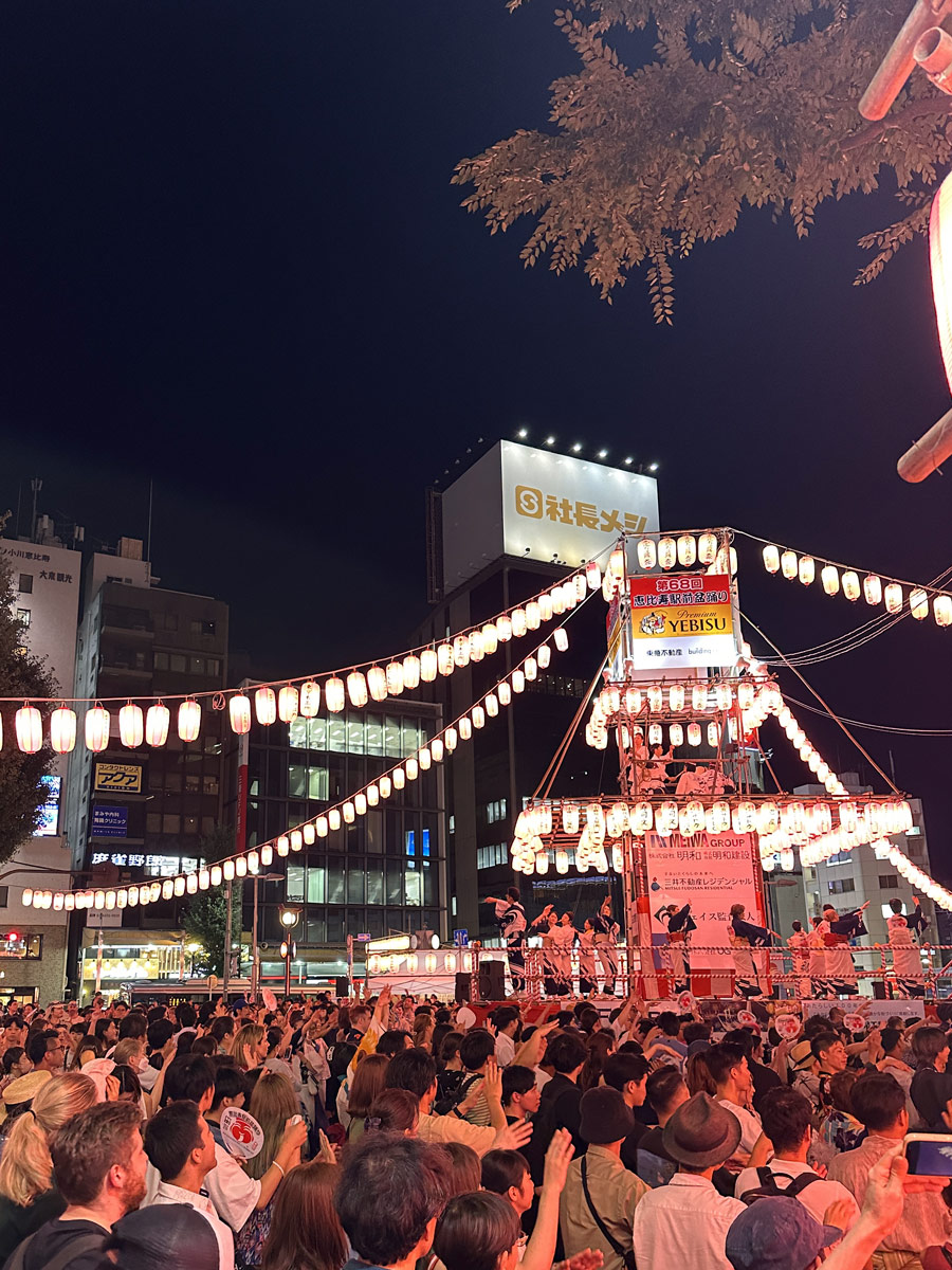 この後は3人で、恵比寿コールで沸いている激しい盆踊りに参加。良い汗かきました!!
