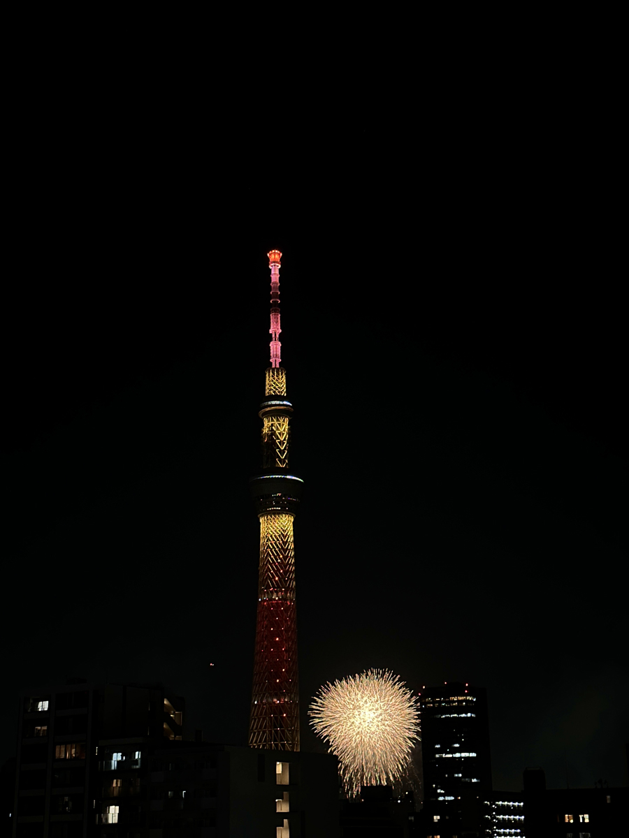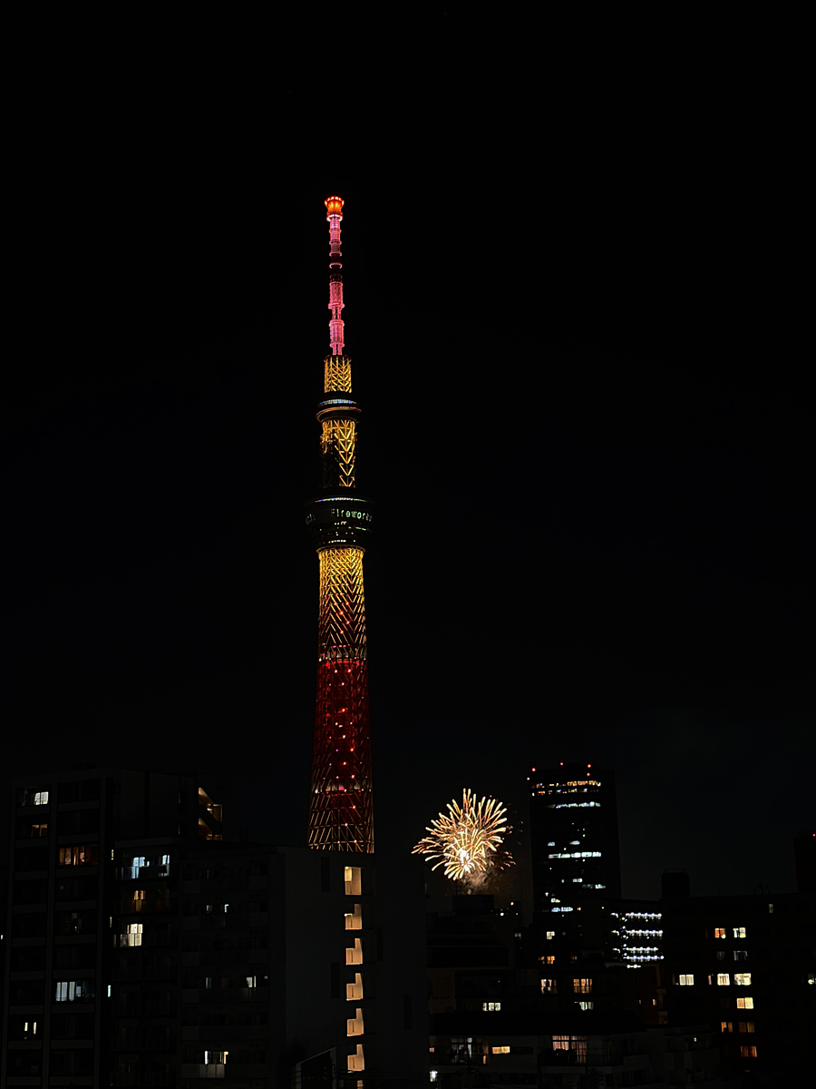 打ち上げ会場のように大きくは見えませんが、スカイツリー越し、最高なやつです。