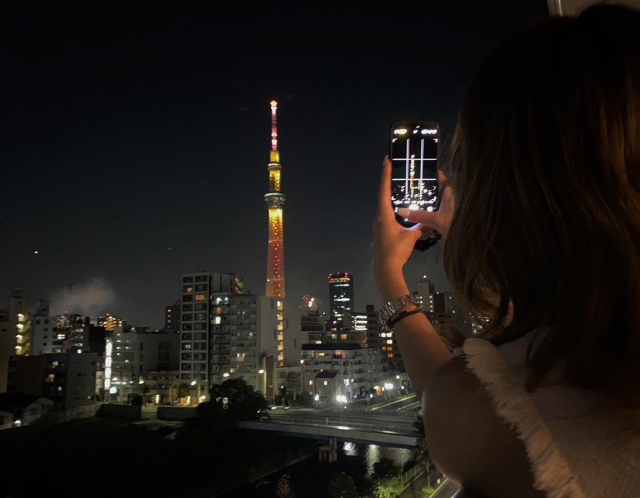 スカイツリーのライトが綺麗に点灯しているタイミングと花火が開くタイミングに合わせてなので、これがなかなか至難の業。