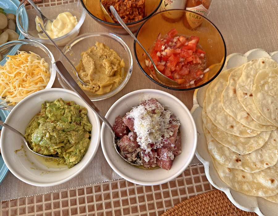 19時のスタートまで、友人の手作りタコスを囲みながらビール片手に時を待ちます。