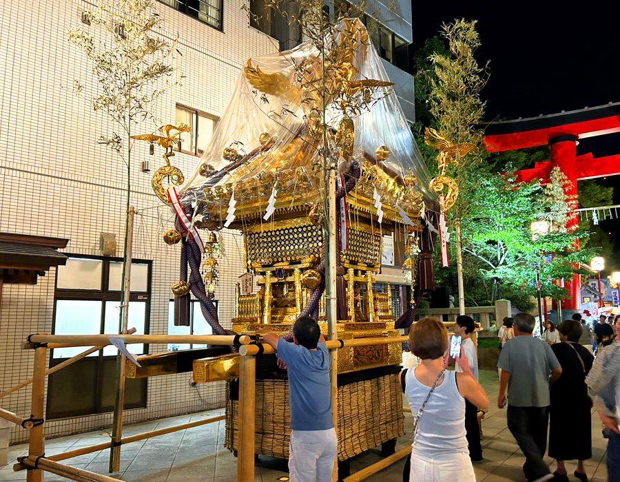 江戸三大祭りのひとつとして歴史は古く、3年周期で、本祭り → 御本社祭り → 蔭祭りの順に祭りの内容が変わるもの。