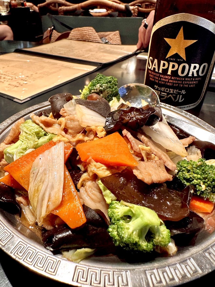 とりあえず瓶ビールを頼み、豚肉ときくらげ炒めを。