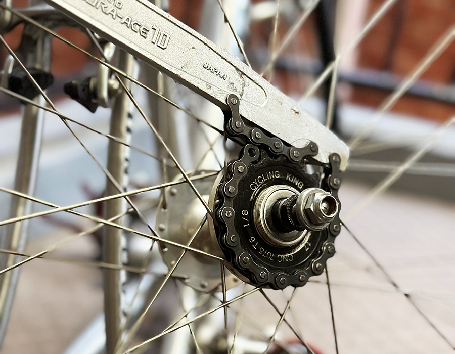 乗り出した時からずっと固定ギヤ(後ろに漕いだら後ろに進むヤツですね)で乗っていたのですが、今回このコグ(固定ギヤ)をフリーコグに変更してのんびり乗れる仕様にしてみようと。