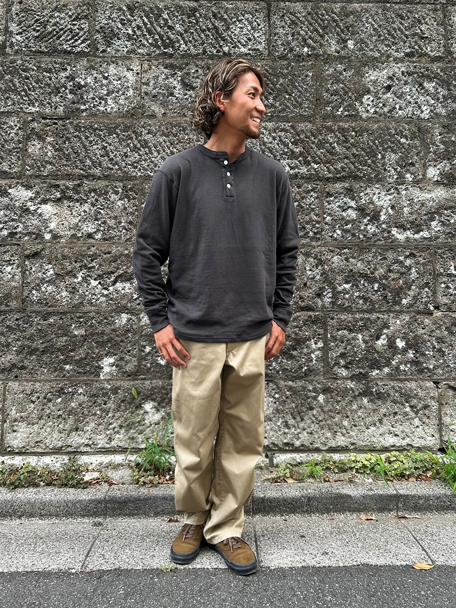 パンツはヴィンテージの41Khakiをベースに穿きやすいバランスにアップデートした特別な一本。