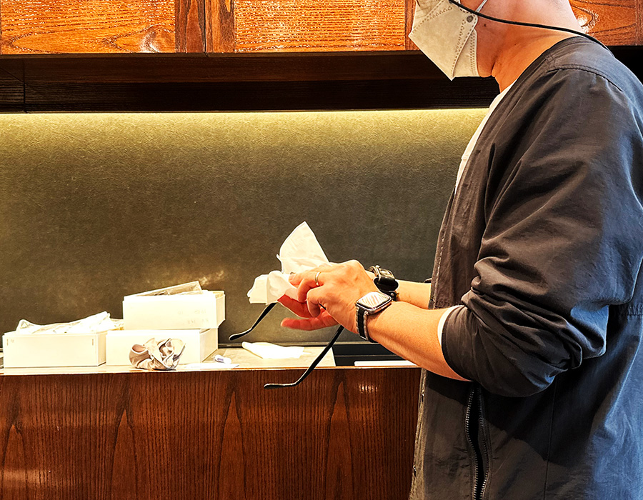 ジャパンブランドならではの職人の技が光るアイウェアは、作り、掛け心地ともに最高。