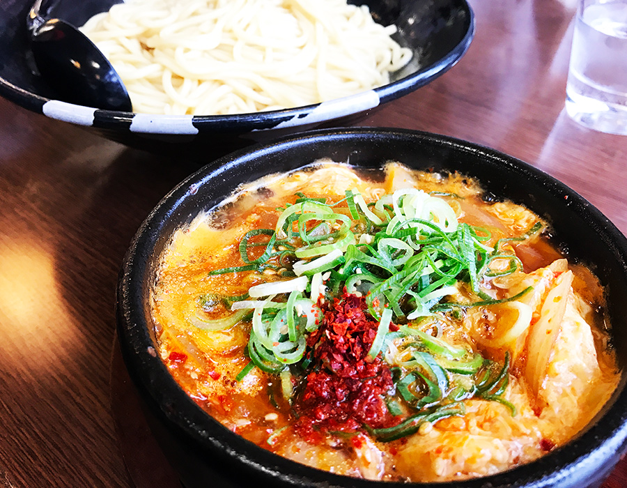 昼飯は冷え切った体にしみる「維新」の熱々石鍋旨辛つけ麺。