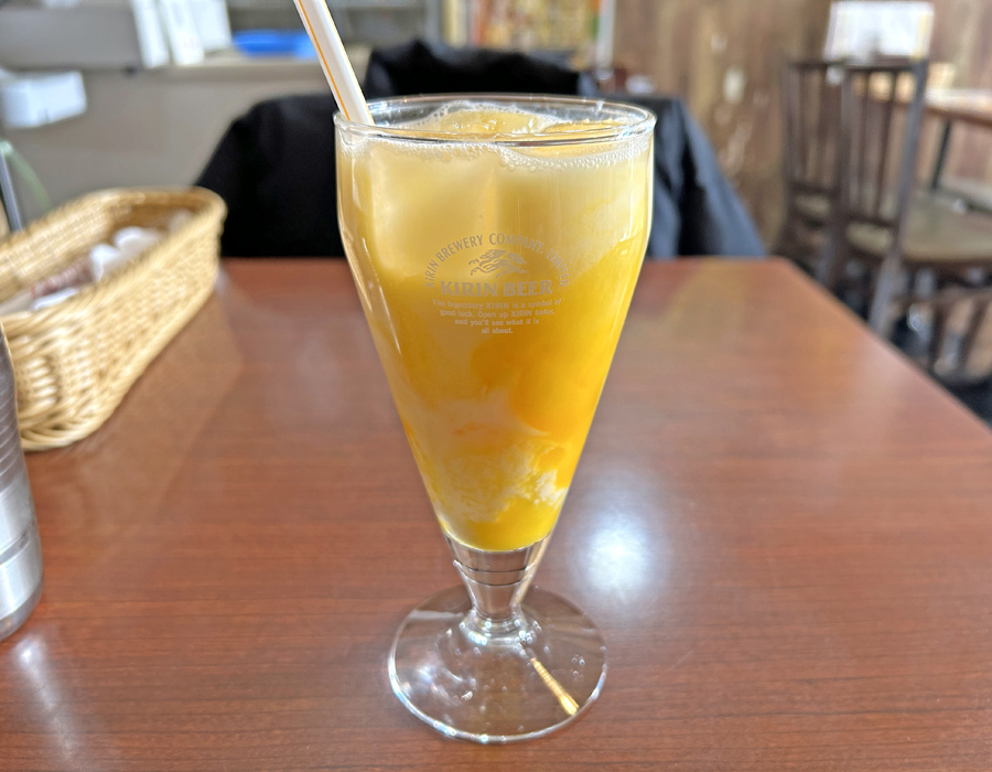 食事のお供はマンゴーラッシー。このスパイス感たっぷりのカレーに合う、合う!