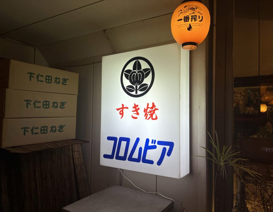 滑り終えて向かったのは友人のおススメのすき焼き屋「コロムビア」