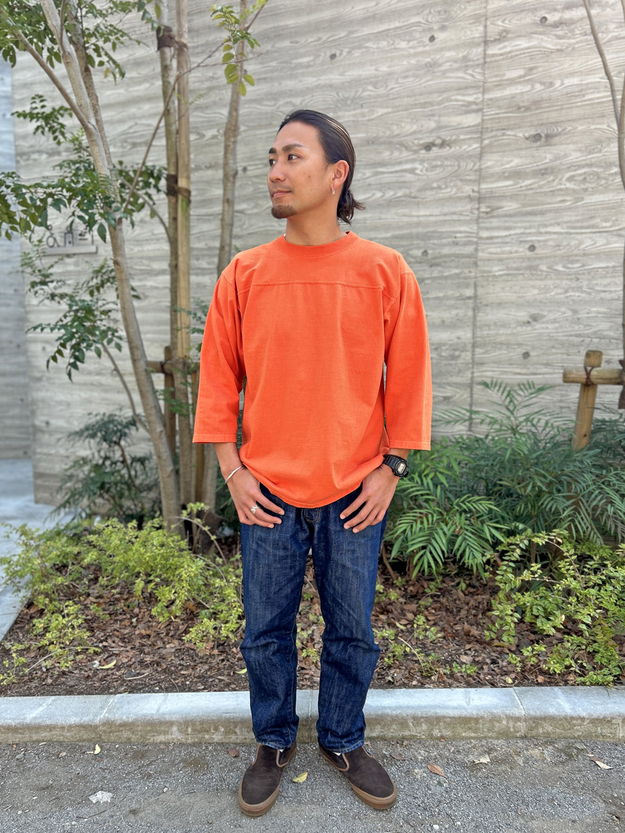 オリジナルのフットボールTは肉厚で適度な硬さが好評のヘビーウェイト生地を使用し、ヴィンテージをベースとしながらもバランス良いボックスシルエットの為、とても着やすいです。